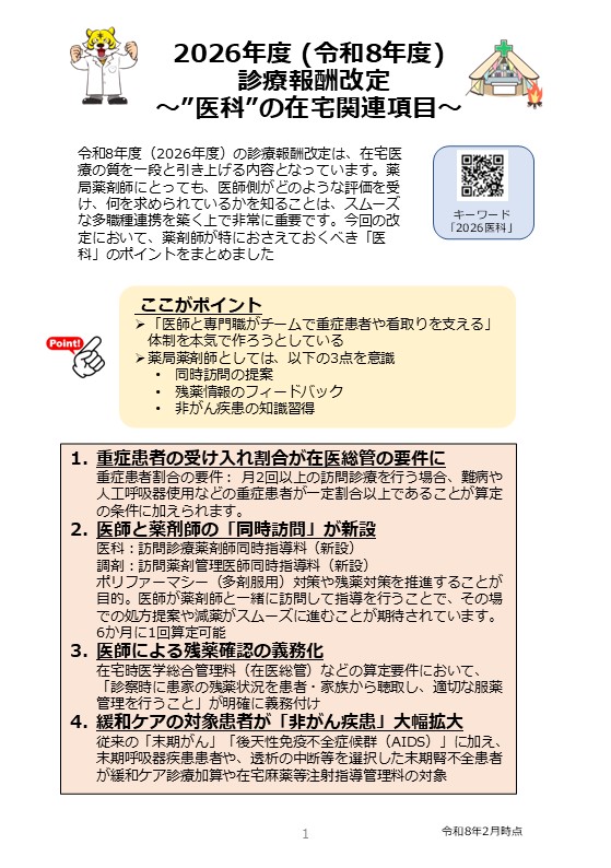 これに伴い、心不全や呼吸器疾患の苦痛緩和(麻薬の注射管理など)への薬剤師の関与がより強く求められることが期待されます。